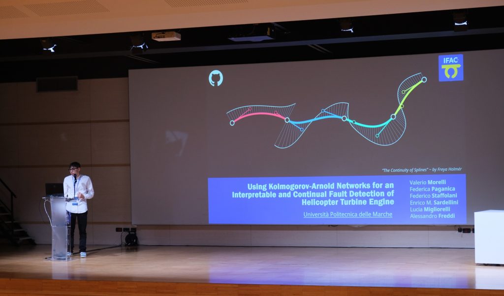 Con grande piacere vi comunichiamo che il lavoro “Using Kolmogorov-Arnold Networks for an Interpretable and Continual Fault Detection of Helicopter Turbine Engines”, presentato da Valerio Morelli, studente del nostro Corso di Laurea Magistrale in Ingegneria Informatica e dell’Automazione, durante la 7° IFAC Conference on Intelligent Control and Automation Sciences svoltasi a Padova, dal 15 al 18 Settembre 2025, si è aggiudicato il Best Paper Award.