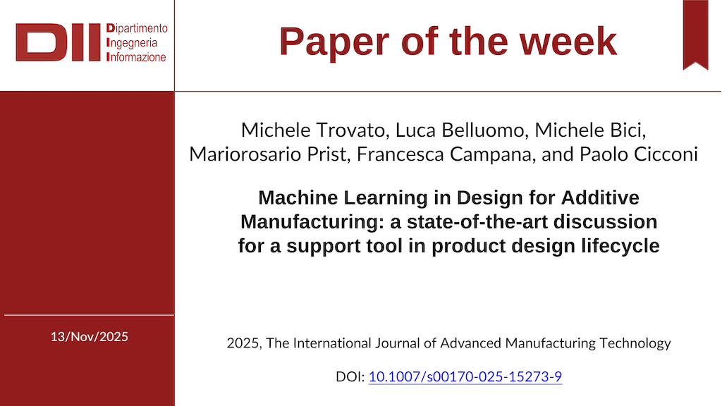 In questo contesto, il lavoro che vi proponiamo questa settimana presenta lo stato dell’arte sull’impiego dell’apprendimento automatico nell’additive manufacturing per i componenti metallici, con l’obiettivo di sviluppare strumenti a supporto dell’intero ciclo di vita del prodotto. L’articolo descrive come l’intelligenza artificiale stia supportando i processi decisionali dalla progettazione alla produzione, contribuendo a ottimizzare tempi, costi, qualità e prestazioni dei componenti.