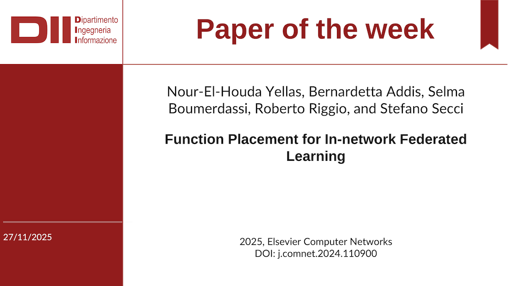 In questo lavoro proponiamo un framework per il deployment di client in rete, in grado di compensare la variazione del tempo end-to-end dovuta all’eterogeneità delle condizioni di rete. Presentiamo un nuovo schema di controllo per l’apprendimento distribuito, denominato In-network Federated Learning Control, che supporta l’esecuzione di funzioni di apprendimento federato distribuite in reti geograficamente estese, progettato per mitigare il problema dei stragglers (nodi lenti) con costi di deployment contenuti.
