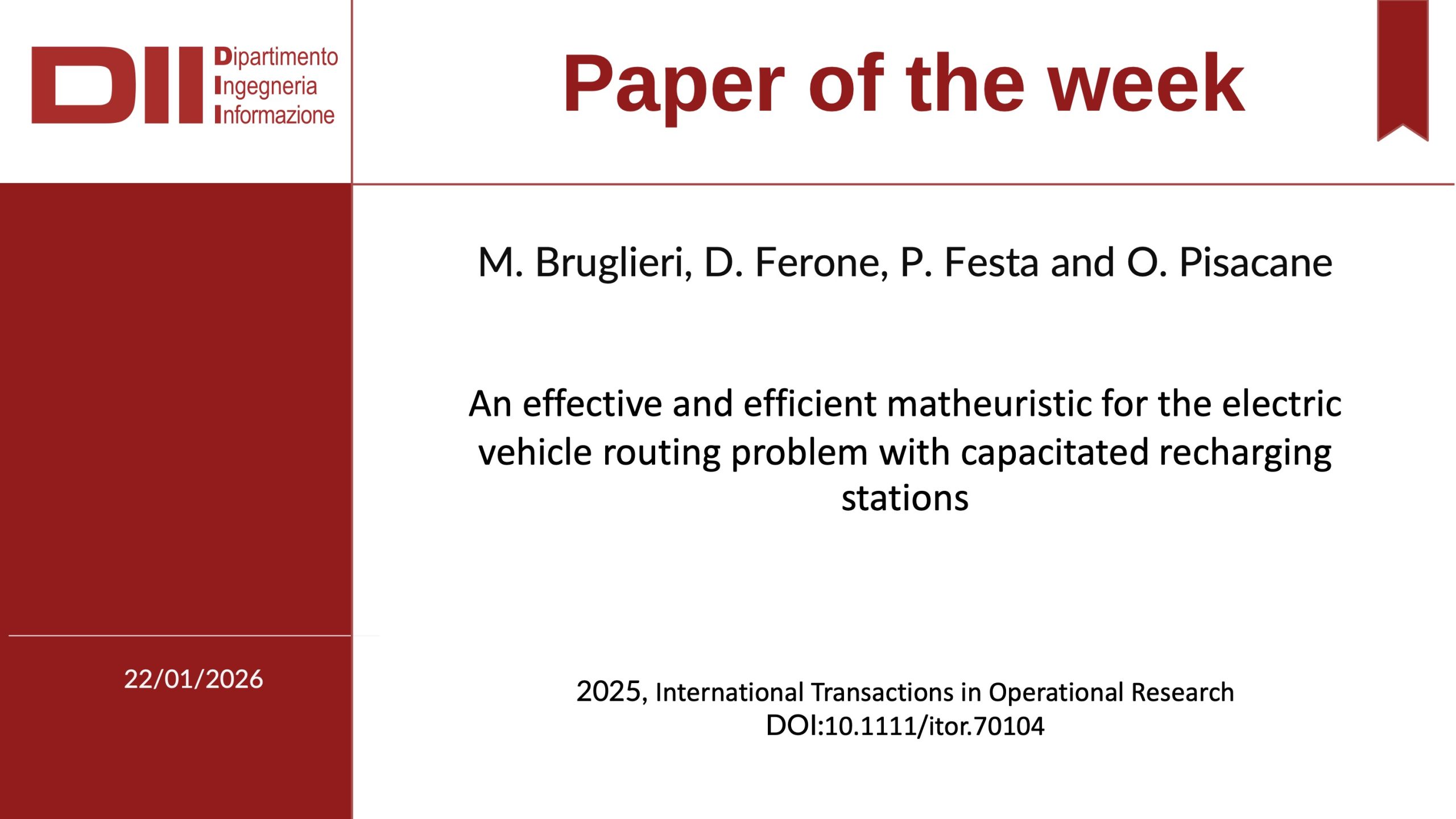 Il paper di questa settimana affronta, in particolare, il problema di instradare una flotta di veicoli elettrici, per servire clienti, geograficamente distribuiti, entro le proprie finestre temporali, minimizzando la distanza totale percorsa.