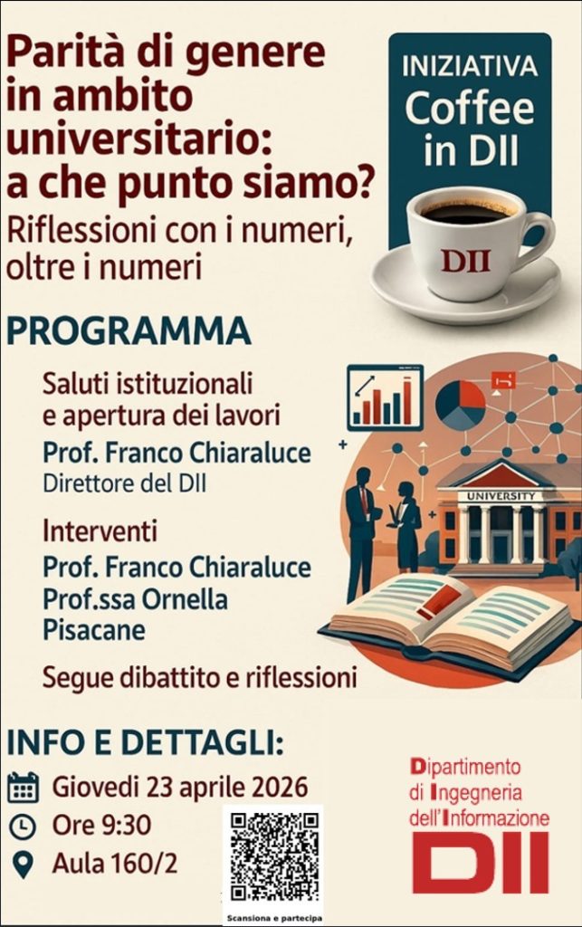 Nell’ambito della nostra iniziativa Coffee in Dii, Giovedì 23 Aprile, alle 9.30, presso la nostra Aula 160/2, il Prof. Franco Chiaraluce, Direttore del DII, e la Prof.ssa Ornella Pisacane, terranno un seminario su: